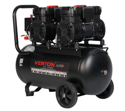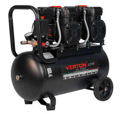 Линейка безмасляных компрессоров Verton в конструкции, которых не предусмотрены маслосмазываемые комплектующие, за счет этого они вырабатывают сжатый воздух высокой степени чистоты, без содержания масляных паров. Он необходим для стабильной работы наиболее современного и чувствительного пневмооборудования – строительного, фармацевтического, медицинского, пищевого, химического. Широко используется в автосервисе при покрасочных и кузовных работах.  Отличается низким уровнем шума и вибрации при эксплуатации.